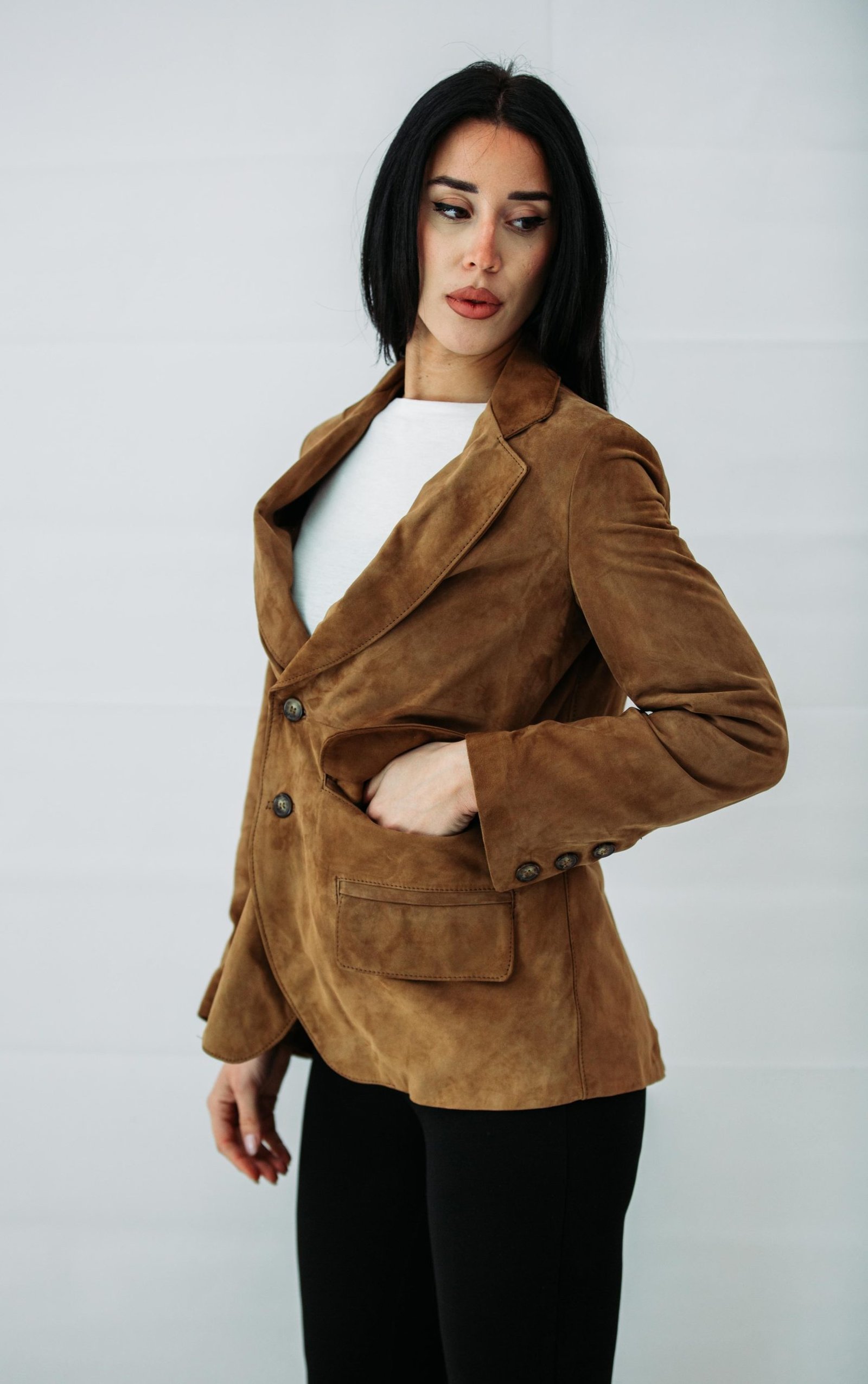Raffinata, decisa, senza tempo: Alice è la giacca in vera pelle pensata per chi desidera uno stile elegante ma con carattere. Realizzata artigianalmente in vera pelle di alta qualità, si distingue per il suo taglio sartoriale e la cura dei dettagli. Il design moderno incontra la tradizione in una silhouette femminile che valorizza la figura, ideale per ogni occasione, dal giorno alla sera.