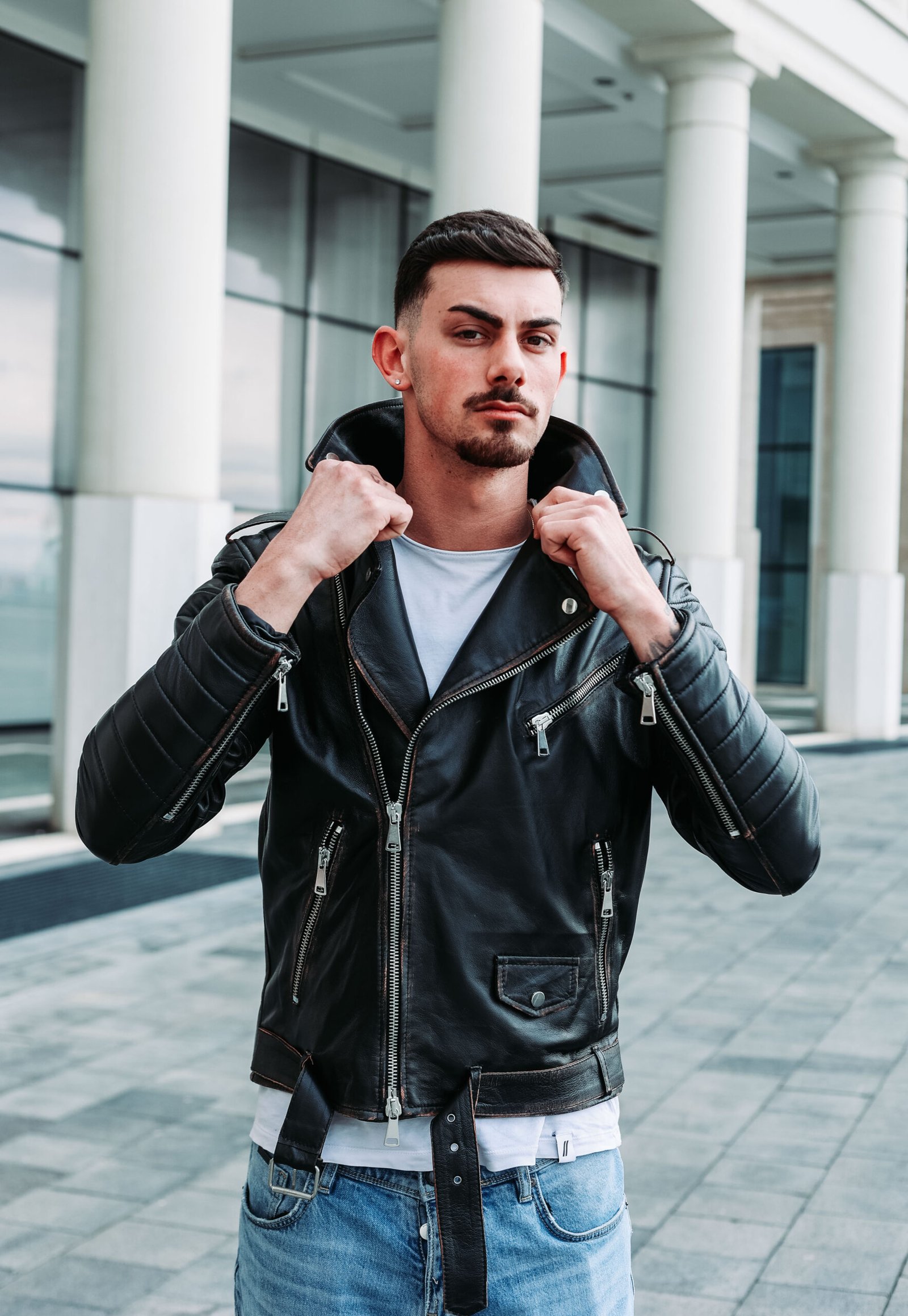 Distinguersi non è mai stato così facile. Il nostro giubbotto in vera pelle da uomo unisce la classicità del taglio biker al carattere audace di un design unico: una stampa sul retro con teschio e rose rosse, simbolo di forza e passione Abbinalo a jeans e stivaletti per un outfit d’impatto, oppure indossalo sopra una t-shirt bianca per un tocco ribelle senza tempo.