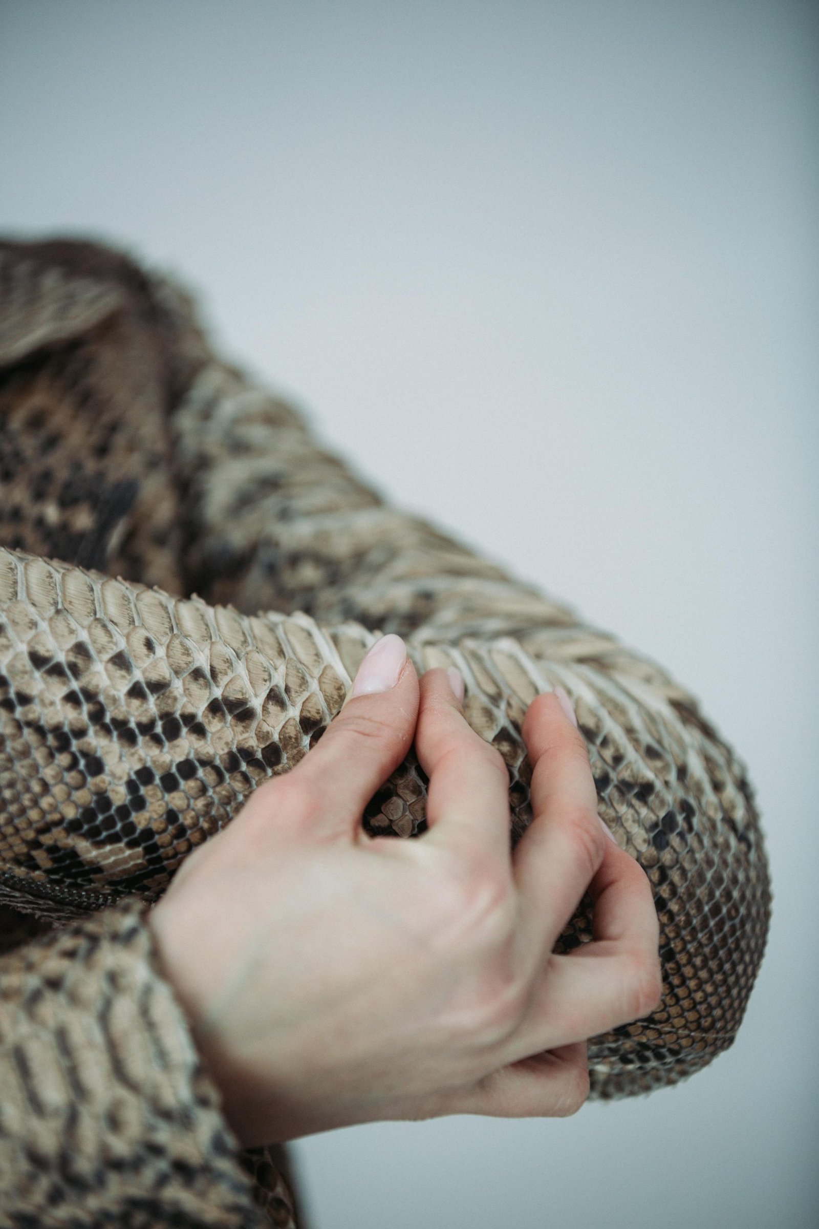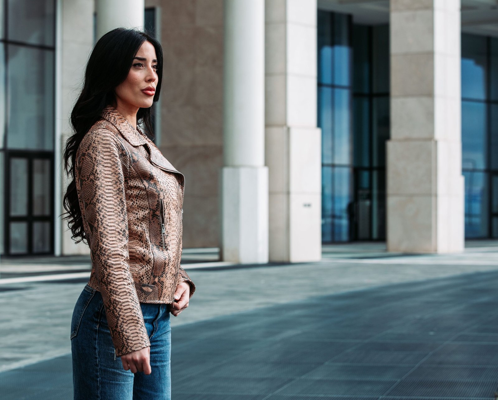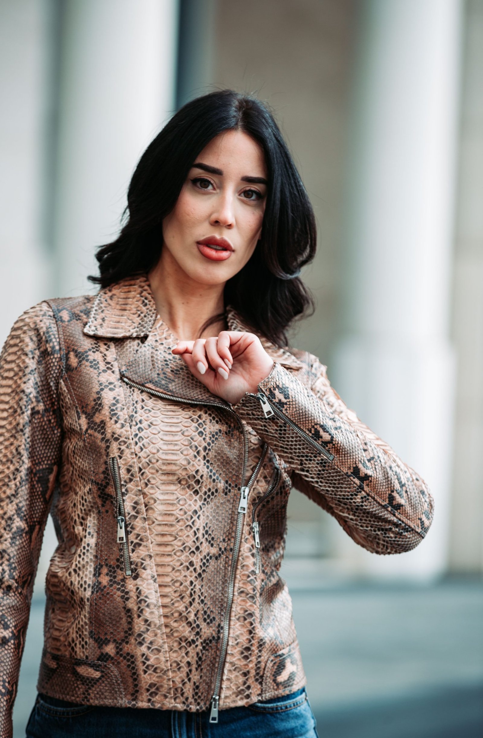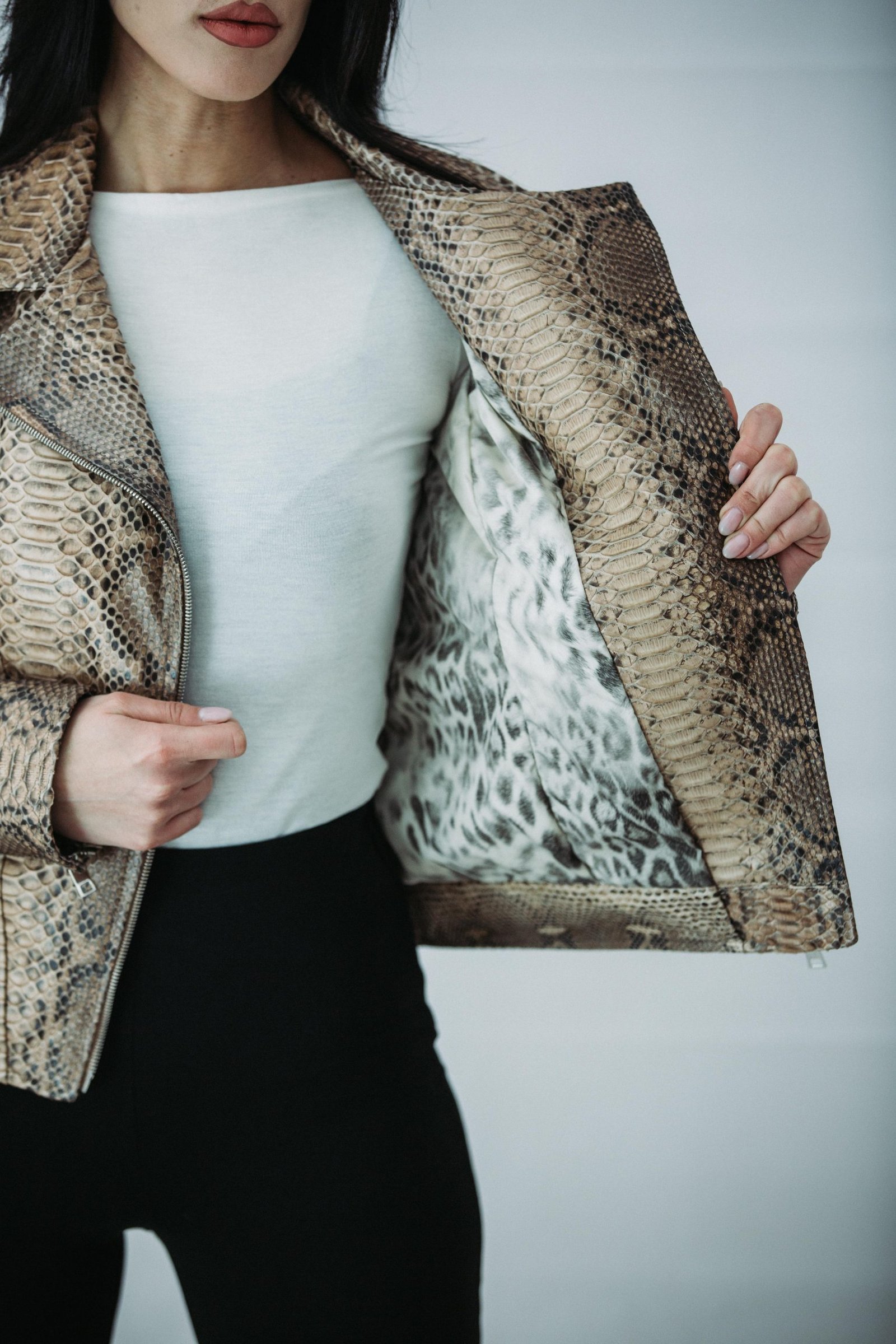 Un’icona di stile ribelle incontra il lusso esotico. Questo chiodo in vero pitone naturale è un capo senza compromessi, pensato per chi vuole distinguersi con carattere e raffinatezza. Realizzato artigianalmente, ogni giacca è un pezzo unico, con la tipica texture a scaglie che rende inconfondibile la pelle di pitone.