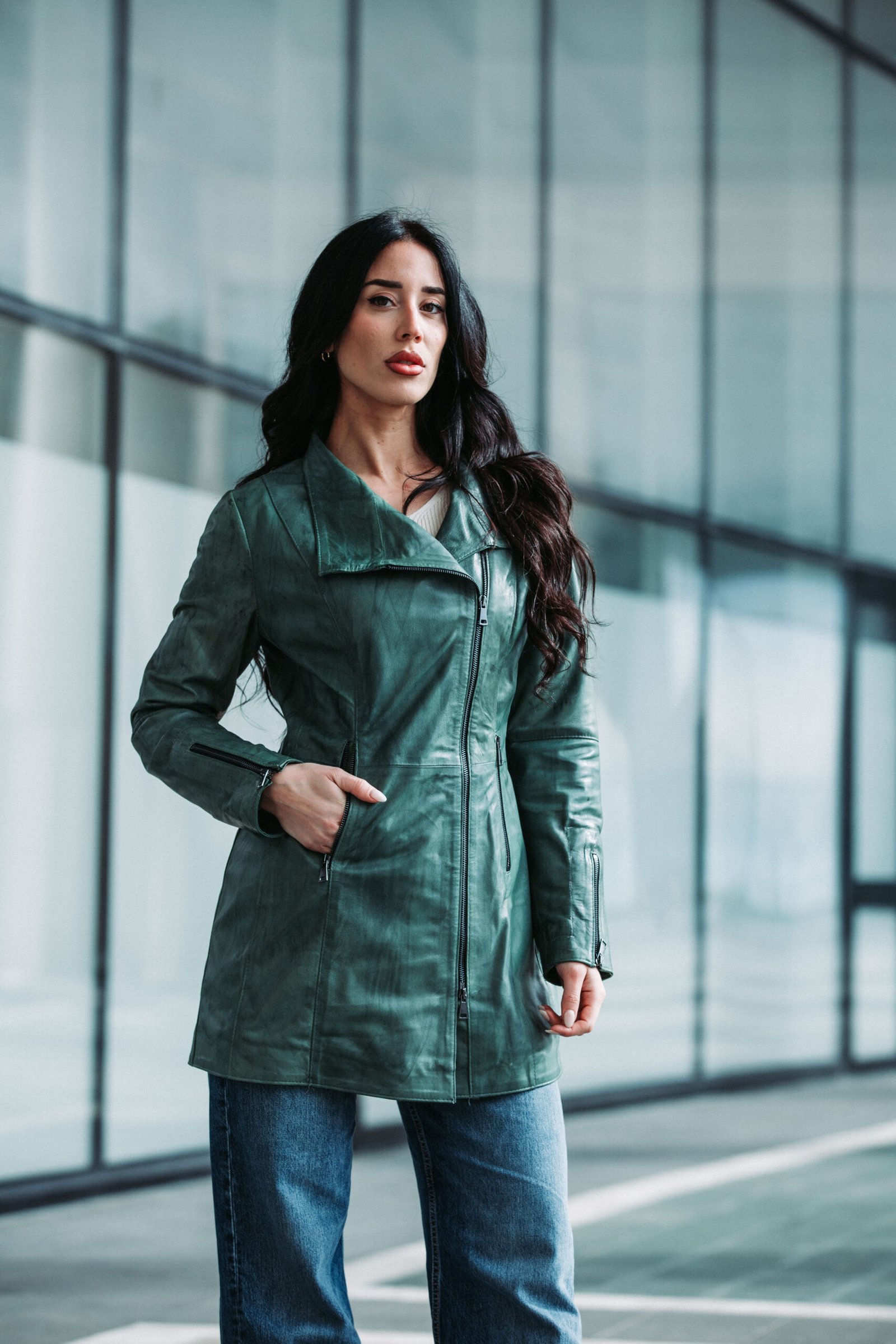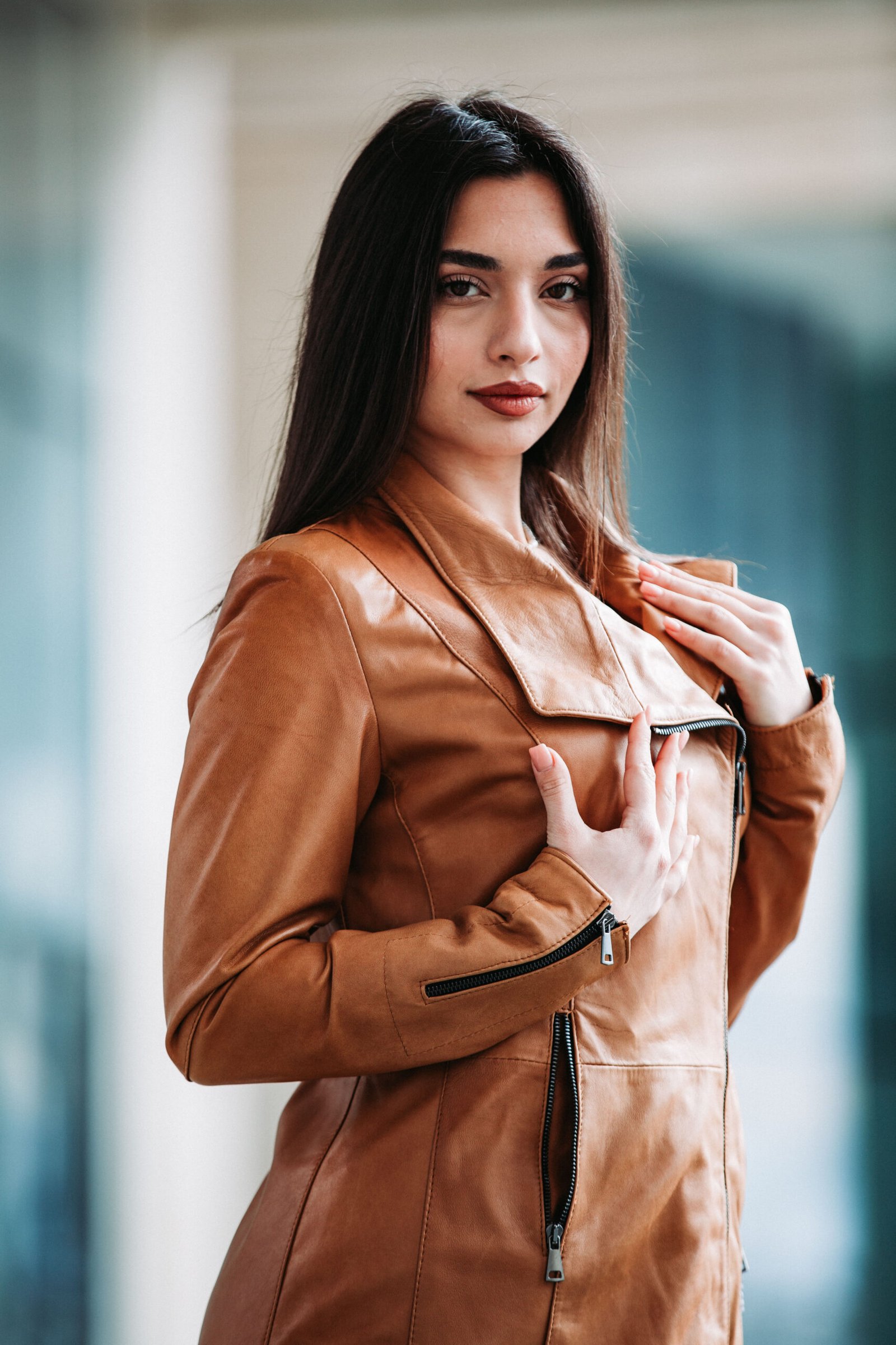 Questa giacca in vera pelle rappresenta l’incontro perfetto tra eleganza senza tempo e design contemporaneo. Realizzata con pellami selezionati, è un capo di alta gamma pensato per donne che amano distinguersi con classe.