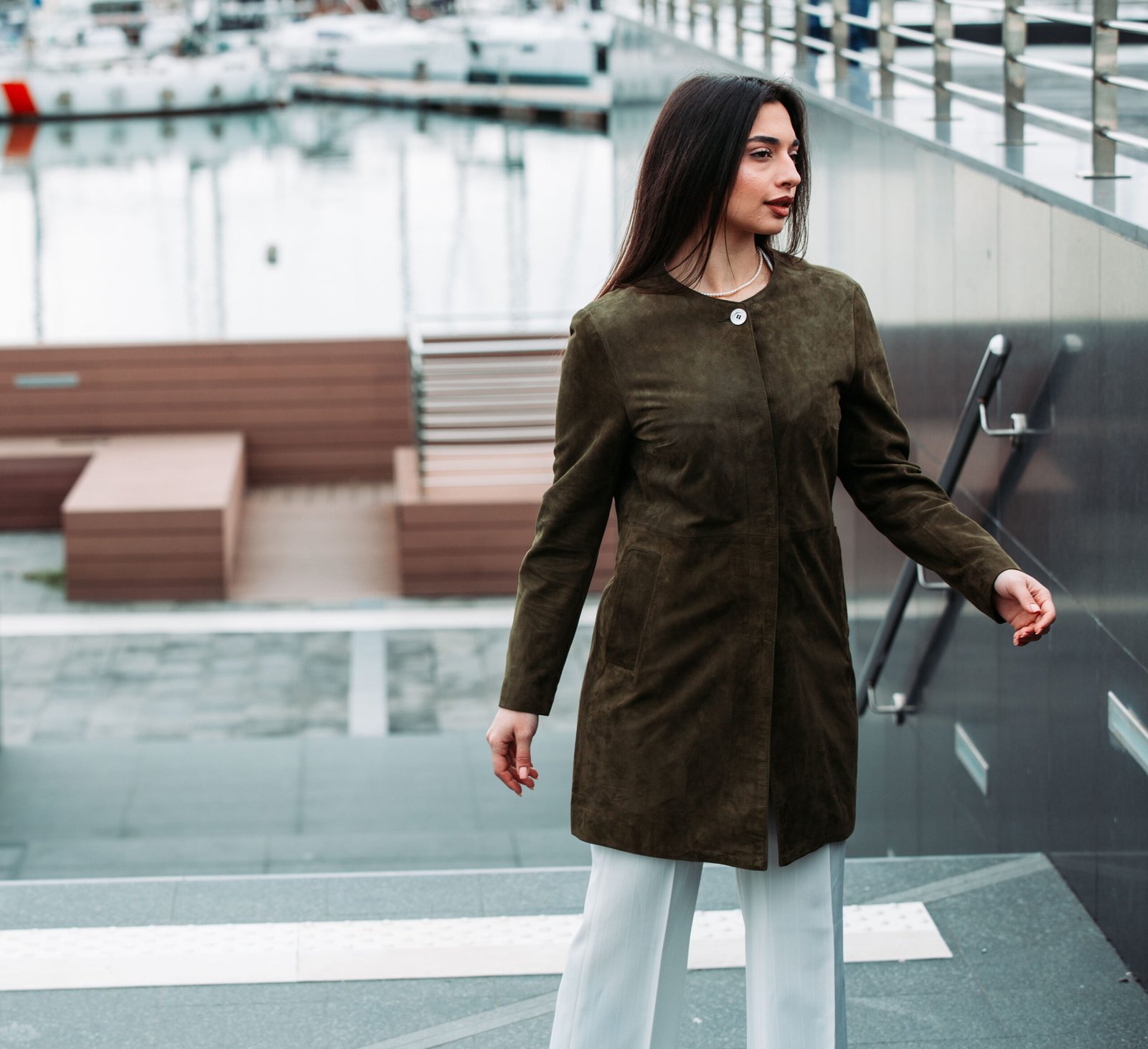 La Polo Ilaria è l’emblema dello stile casual-chic reinterpretato in chiave raffinata. Realizzata in vera pelle scamosciata , questa giacca unisce l’essenzialità di una polo con la struttura di un bomber, creando un capo unico nel suo genere. Perfetta per donne dinamiche che non rinunciano alla classe.