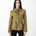 Il design è ispirato al classico stile militare, con quattro tasche frontali con patta, cintura integrata per esaltare il punto vita e bottoni in corno effetto vintage. Il colletto alto dona carattere e versatilità, ideale da portare sia alzato che abbassato a seconda dell’occasione.