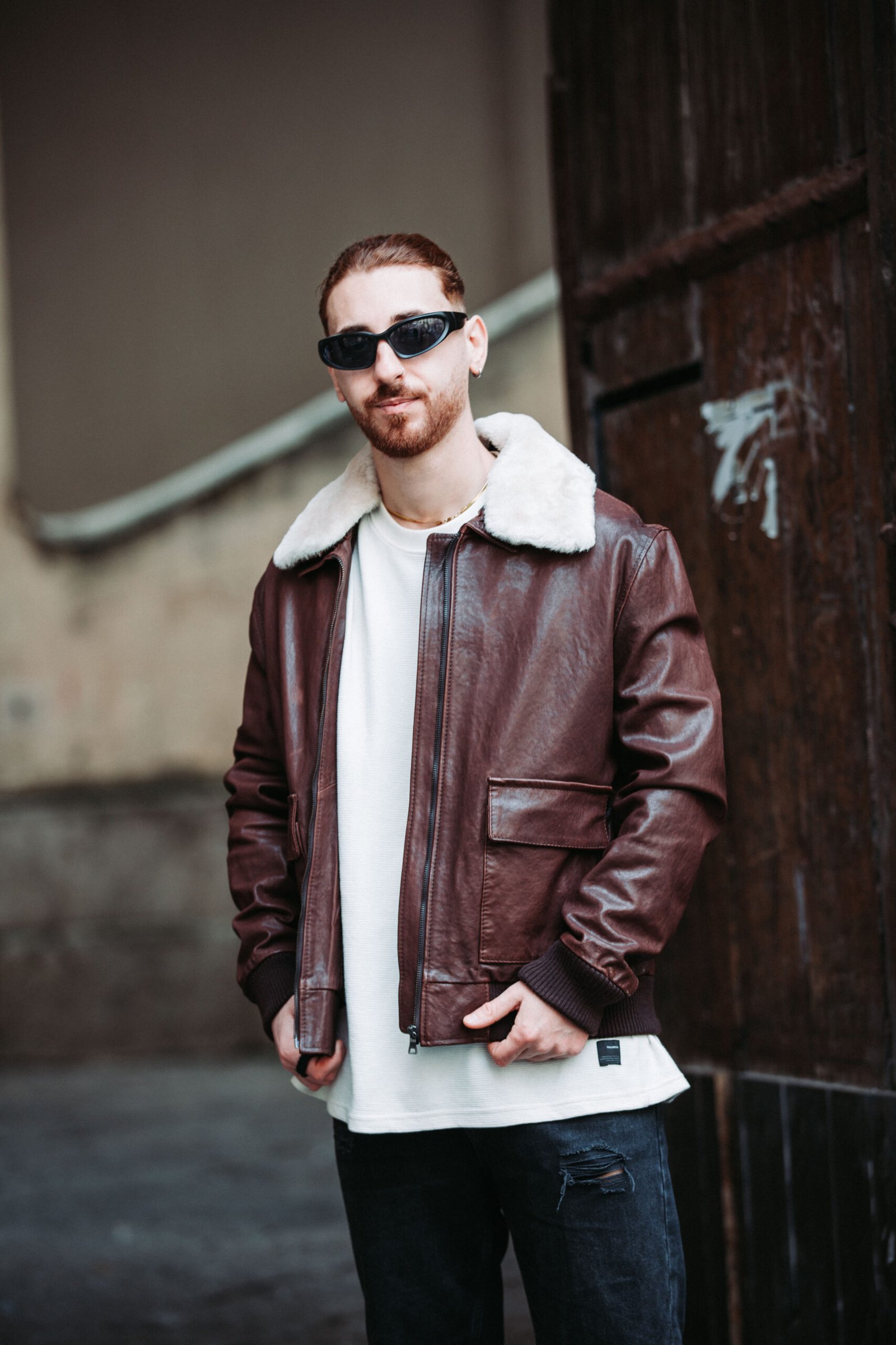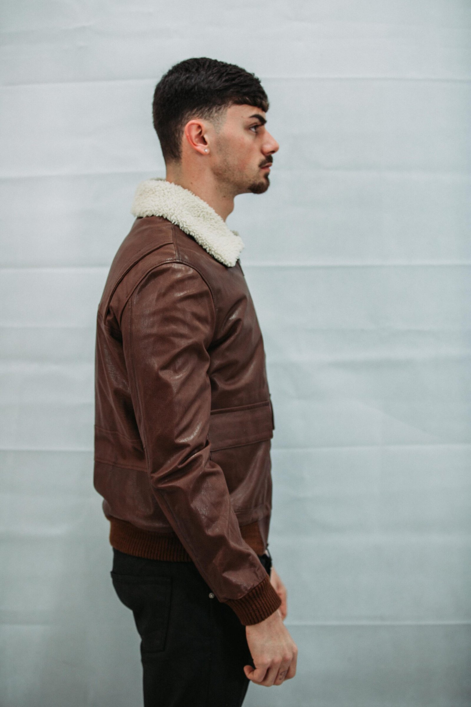Essenziale, ma ricco di stile: questo bomber in pelle  da uomo è la scelta perfetta per chi cerca un look casual raffinato e senza tempo. Il colletto in shearling  c dona un tocco vintage e comfort termico, mentre il taglio pulito lo rende adatto sia a outfit streetwear che più ricercati.